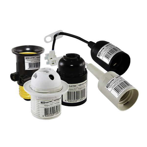 Для промышленного и бытового применения. Патроны подразделяются по цоколям: Е14, Е27, Е40.